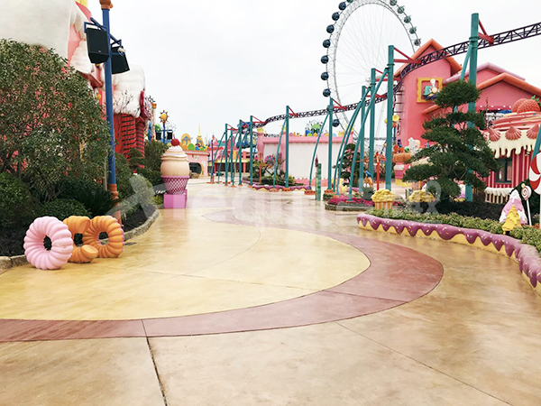 鋪裝類型:壓印藝術地坪、洗砂面藝術地坪、圖案彩色密封